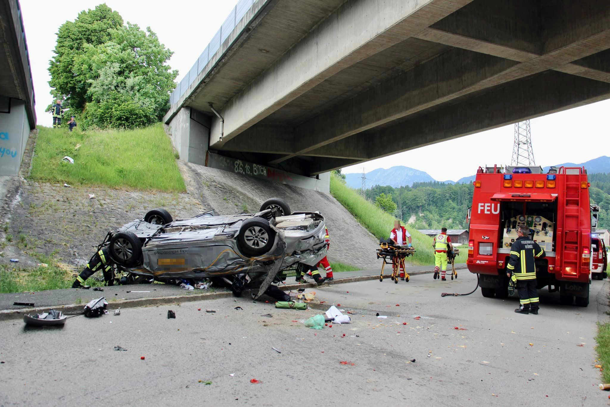 Ein spektakulärer Verkehrsunfall hat Sonntagnachmittag in Wörgl im Tiroler Bezirk Kufstein zwei Verletzte gefordert.
