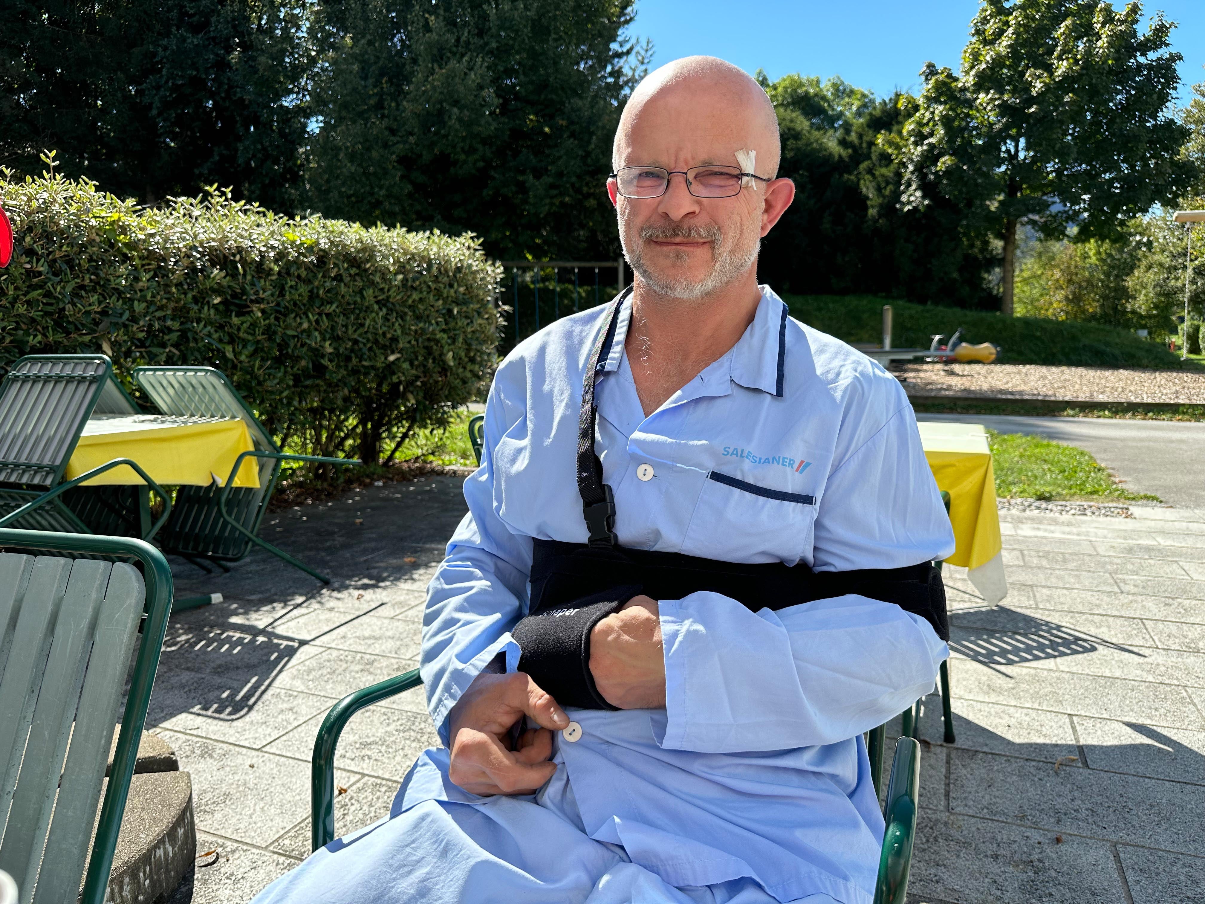 Danach habe es eine Zeit gedauert "bis der Schmerz gekommen ist, der linke Fuß war ganz blau, die Schulter hat Absplitterungen in der Gelenkspfanne" und ein Cut am Kopf blutete doch sehr. "Ich wäre selbst nie rausgekommen", erzählt der Familienvater.