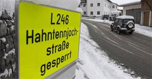 dort die Fahrbahn. Wegen drohender Lawinen gesperrt sind unter anderem die
