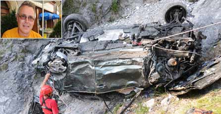 Das Auto von Michael Schöke stürzte 400 Meter in eine Schlucht. Er selbst rettete sich mit einem waghalsigen Sprung aus dem Auto.