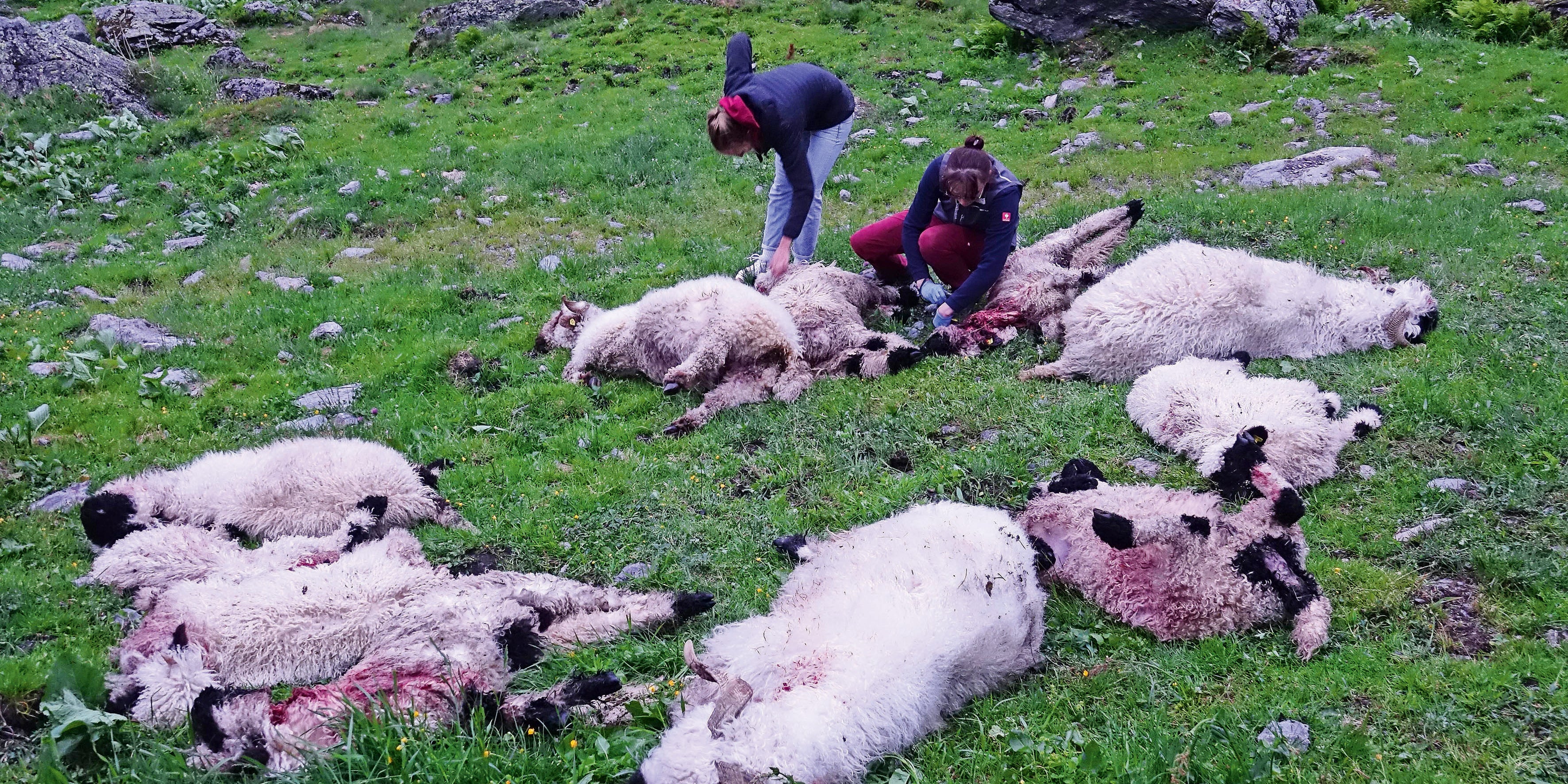 „Wir haben uns sofort auf den Weg gemacht, um die Alm abzusuchen. Insgesamt 20 Schafbauern und freiwillige Helfer entdeckten dann nach und nach das gesamte Ausmaß des Massakers“, schildert Peter Pirchl, Ortsbauernobmann aus Westendorf. 16 gerissene Schafe, von denen fünf notgeschlachtet werden mussten und mehrere weitere schwer verletzte Tiere, die mittels Hubschrauber ins Tal geflogen wurden – das ist die traurige Bilanz nach den Rissen in Westendorf.