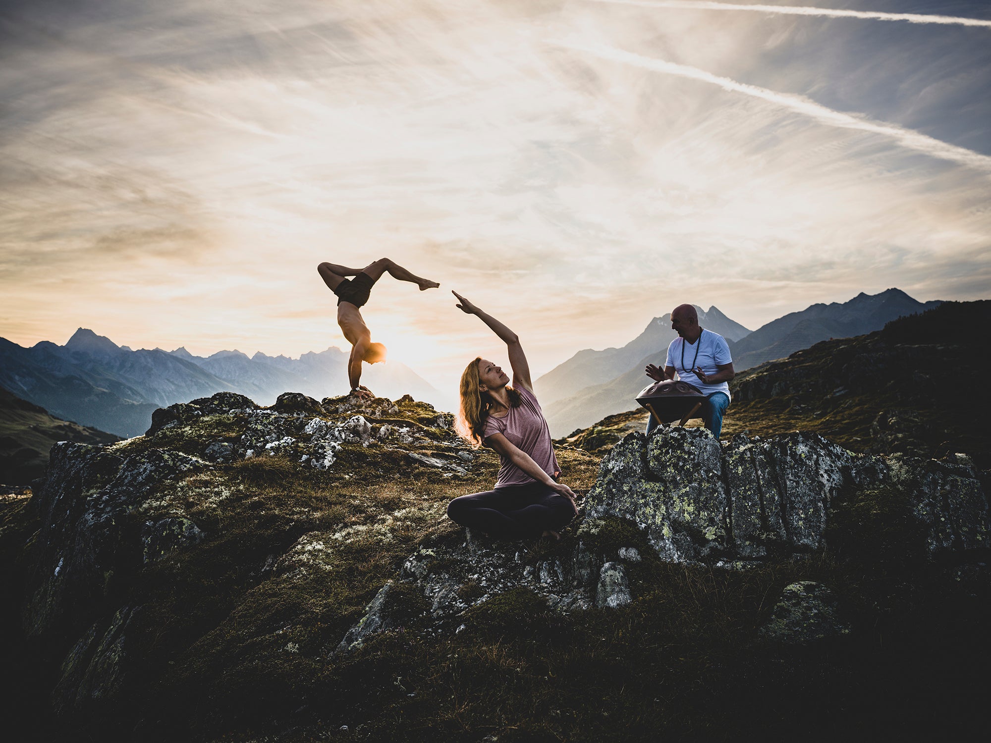 Die Festivaltage beginnen früh morgens mit geführten Meditationen. Nach dem Frühstück geht es schon hinaus in die Natur und zu den ersten Yogaeinheiten. Der schon legendäre Yoga-Mittags-Stammtisch am Gampen auf 1.600 Meter Seehöhe ist Treffpunkt aller Yogis, Lehrer und Experten. An den Nachmittagen finden am Berg und im Tal Workshops und Restorative-Sessions statt. Die Abende klingen entweder mit Musikprogramm oder dem traditionellen Yoga-Talk aus. Ein Highlight ist die Sonnenaufgangswanderung am Sonntag. Ein Bergerlebnis der ganz besonderen Art, das für viele bleibende Erinnerungen an das Mountain Yoga Festival St. Anton sorgt.