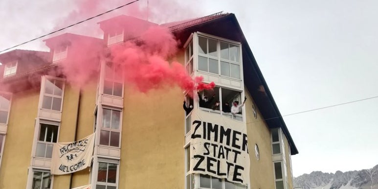 Innsbruck. In Innsbruck haben am Samstag rund 30 Aktivisten vor einem geschlossenen Hotel im Stadtteil Pradl gegen zu viel leer stehenden Wohnraum demonstriert und das Hotel teilweise besetzt. Darüber hinaus bekundeten sie ihren Unmut, dass Asylwerber und Flüchtlinge zeitgleich in "Massenunterkünften und Zelten" leben müssten. "Zimmer statt Zelte" war auf einem angebrachten Transparent zu lesen. Am Abend verließen sie - offenbar nach Verhandlungen mit der Politik - wieder das Hotel.