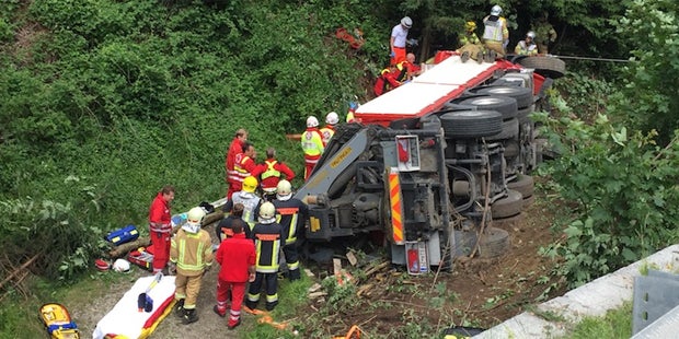 Zwei Schwerverletzte hat eine Kollision zweier Lkw am Donnerstag auf der Achenseebundesstraße (B181) bei Wiesing (Bezirk Schwaz) gefordert. Laut Polizei kamen die Schwerfahrzeuge nach dem Zusammenstoß von der Fahrbahn ab und landeten in Seitenlage im Straßengraben. Die Bergung gestaltete sich schwierig. Einer der Lenker, ein 57-jähriger Einheimischer, konnte erst nach drei Stunden befreit werden.