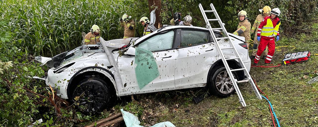 Der Wagen geriet ins Schleudern und wurde ausgehoben.