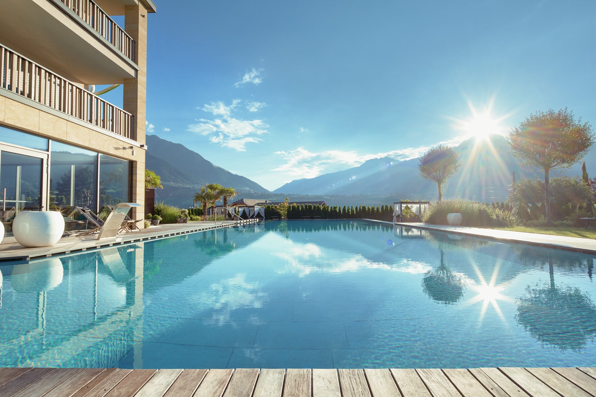 Es ist eine Traumkulisse für Wanderer, Radfahrer und auch für Gourmets: Das familiär von Familie Waldner geführte La Maiena Meran Resort ist Wellnesshotel, Aktivresort und Genießerhotel. Es zählt zur elitären Vereinigung Belvita Leading Wellnesshotels Südtirol. Doch nicht nur Aktivurlauber kommen im Resort nahe der hippen Stadt Meran, die Shoppingherzen höher schlagen lässt, voll auf ihre Kosten: Faulenzer, Sauna-Fans oder Schwimmer genießen den großzügige „Sensa Spa“ im Hotel. Mit einer Vielzahl an Relax-, Fitness- und Badeattraktionen wird jeder Wunsch erfüllt. Schwerelos im Pool schwimmen und das malerische Südtiroler Panorama genießen können die Urlauber im 26 Meter langen Infinity Outdoor Pool. Doch nicht nur an die Großen wurde gedacht. Babys wellnessen im 33 Grad Warmwasserpool, und in der Balloon Lounge für Elter und Kinder heißt es Kuscheln und Baden. Wer seinen Urlaub ohne Kinder verbringt, genießt die „Sky Terrace“ der Meran Lodge im adults only Bereich - coole Drinks und Jacuzzi inklusive.