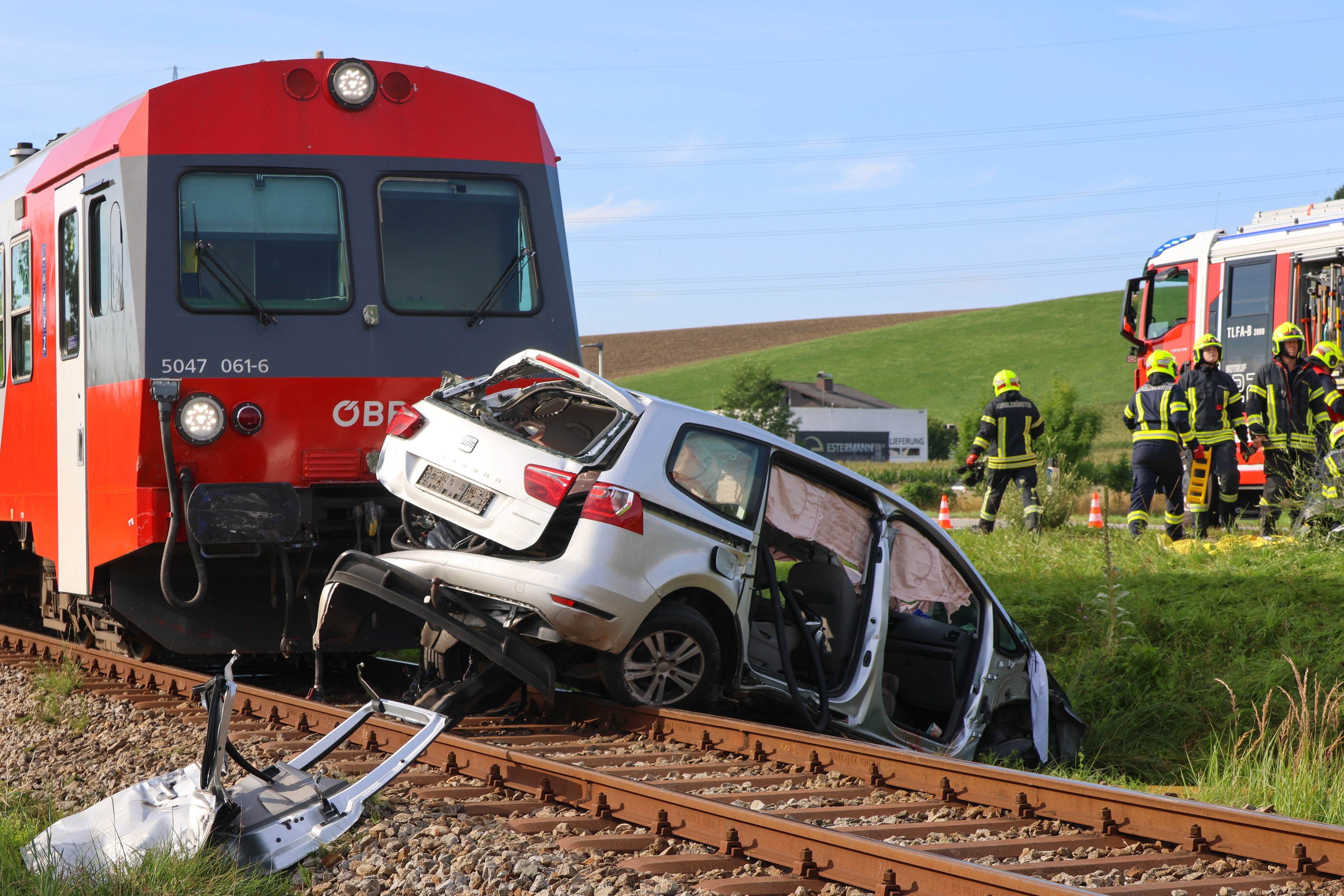 Tödlich endete Mittwochfrüh um 7.42 Uhr ein folgenschwerer Unfall auf einem Bahnübergang in Aurolzmünster, Bezirk Ried im Innkreis, wo ein Pkw von einem Triebwagen der Hausruckbahn erfasst wurde.