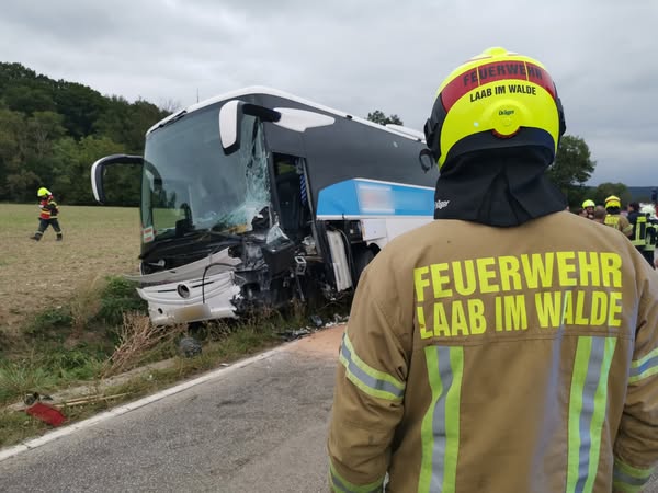 Der Bus kam nach der Kollision laut Aussendung des Bezirksfeuerwehrkommandos von der Fahrbahn ab und blieb an einer Böschung stehen. Die Türen auf der rechten Seite waren aufgrund des schweren Zusammenpralls blockiert.