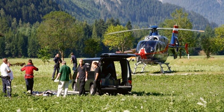 war, landete ein Rettungsheli neben der Absturzstelle. Der Notarzt konnte