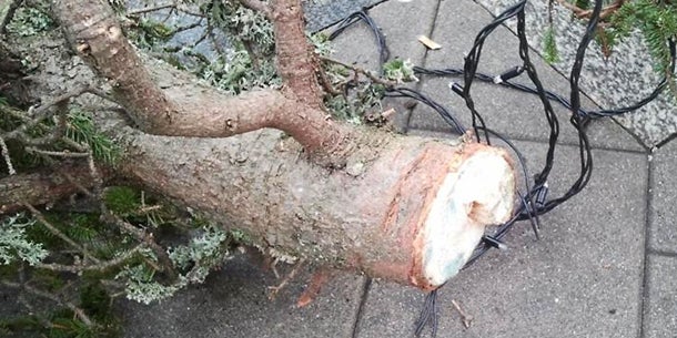 Ein Unbekannter hat in der Nacht auf Montag den Christbaum am Hauptplatz der obersteirischen Stadt Leoben "geköpft". Bei der Stadtpolizei geht man von einem "blöden Scherz" aus, der aber gut vorbereitet gewesen sein dürfte. Der abgeschnittene vier Meter lange Teil stürzte in die Lichterkette des Baumes, blieb dort hängen und wurde erst Montag früh bemerkt.