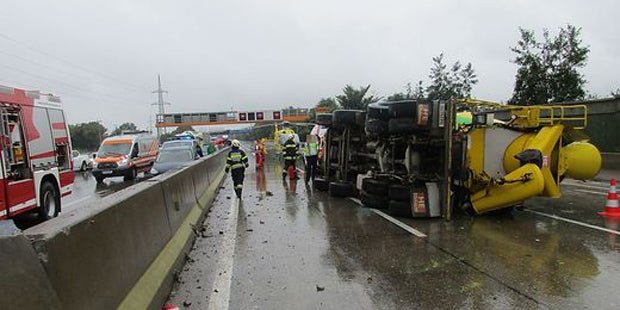 Ein Unfall auf der Pyhrnautobahn (A9) hat Dienstagnachmittag für mehrere Verletzte und Staus im Süden von Graz gesorgt. Ein Betonmisch-Lkw durchbrach bei Seiersberg in Richtung Spielfeld die Betonbarriere zur anderen Fahrbahn. Der Lkw stürzte um, darauf kam es Richtung Graz zu einem Unfall zwischen einem Lkw und einem Pkw. Die Staus reichten bis zum Verteilerkreis Webling und dem Knoten Graz-West.