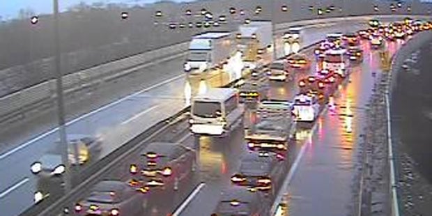 Der mittlere Fahrstreifen war wegen der Aufräumarbeiten gesperrt, der Stau reichte gegen 7.30 Uhr ca. acht Kilometer zurück bis zur Anbindung an die S2 bei der Hermann-Gebauer-Straße.