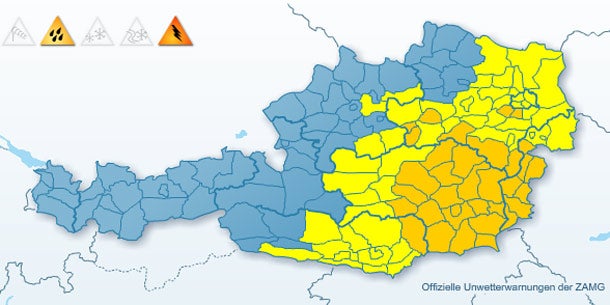 16.12 Uhr: Aktuelle Unwetter-Warnung für Österreich:
