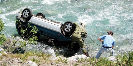 Ohne zu zögern, eilte der Lebensretter zu dem Auto im Fluss