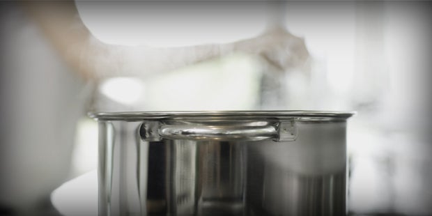Mutter wollte Dampf inhalieren und ihr Sohn griff nach Schüssel.