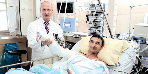 Das Chirurgen-Team um Oskar C. Aßmann im Wiener AKH hatte perfekt gearbeitet. In einer sechsstündigen Operation wurde der in einer Rüttelmaschine abgetrennte Unterarm wieder angenäht. Sehne für Sehne, Muskel für Muskel, Nerv für Nerv.
