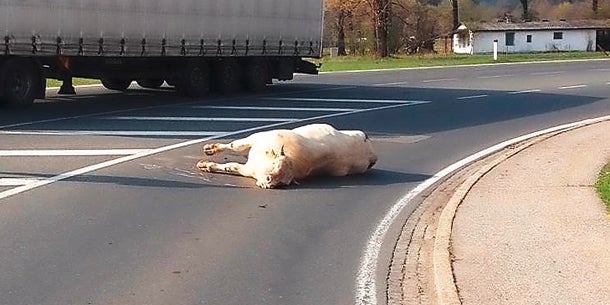 Daniel Heber: Der Stier tobte plötzlich durch die Triglavstraße, der Verkehr stand fast still. Dann stellte sich ein Lkw quer, um ihn zu bremsen. Doch der Stier rannte am Lkw vorbei. Dahinter bewegte sich ein Mädchen im Schritttempo, da passierte das Unglück.