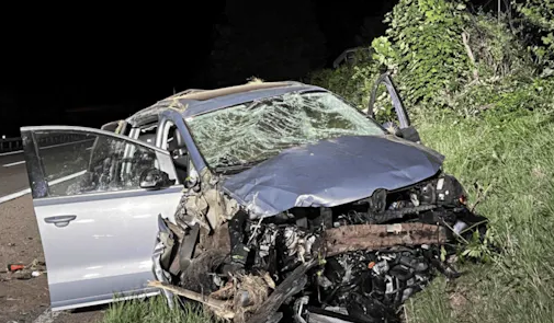Auto der Familie geriet auf Autobahn von der Fahrbahn ab, prallte gegen ein Verkehrsschild und überschlug sich