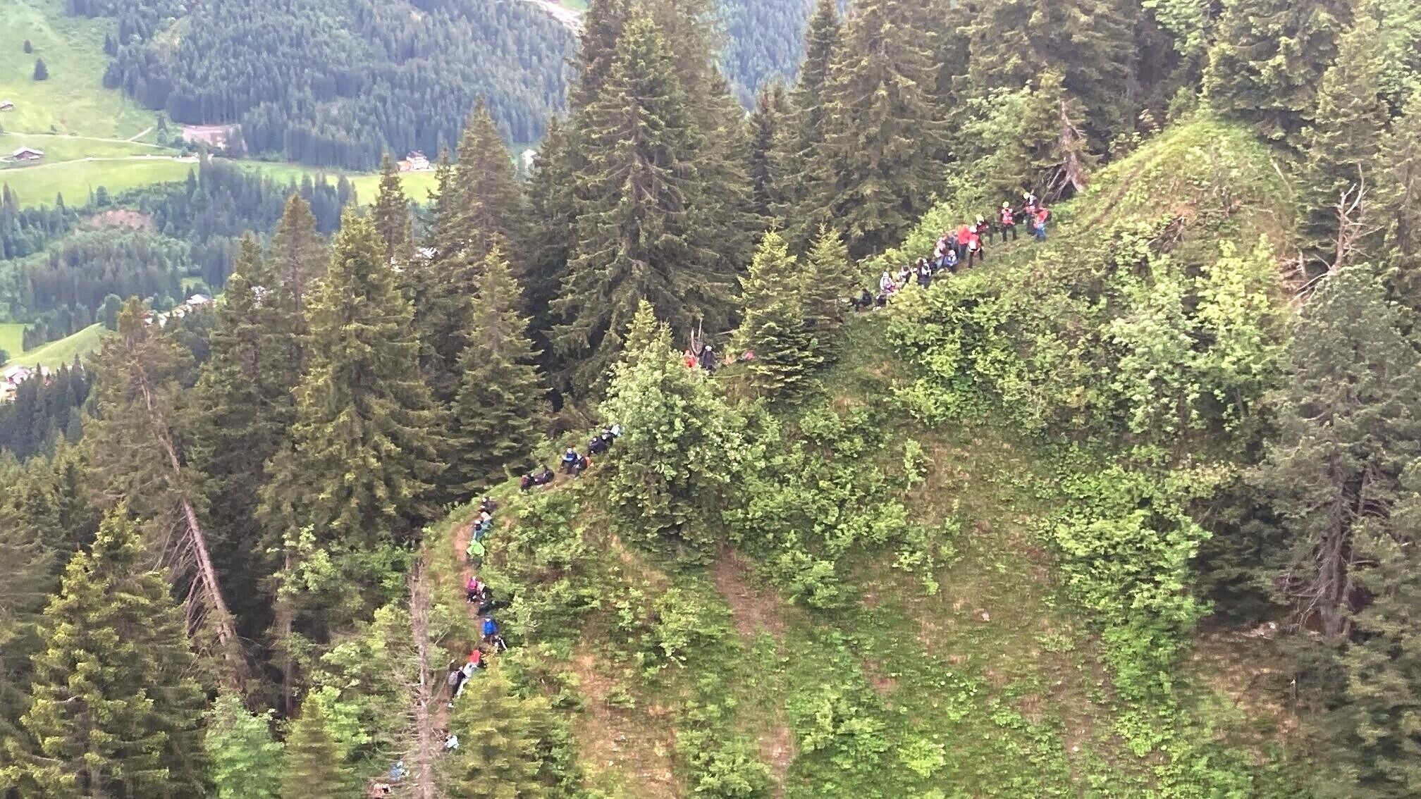 Demnach brach die Gruppe aus 12-14-Jährigen aus Ludwigshafen gemeinsam mit ihren Lehrern gegen 15.00 Uhr von Schöntal in Hirschegg/Kleinwalsertal zum Walmendingerhorn nach Mittelberg auf. Die nicht beschilderte Tour führte über den schmalen Heuberggrat, der laut Polizei "Schwindelfreiheit, Trittsicherheit sowie Erfahrung im alpinen Gelände erfordert". Der Steig war zudem aufgrund der vorhergehenden Regenfälle nass und glitschig. Als eine Teilgruppe sich aufgrund der schwierigen Verhältnisse zur Umkehr entschied, rutschten zwei Schüler ab und zogen sich leichte Verletzungen zu. Daraufhin gerieten einzelne Kinder in Panik, weswegen eine Lehrperson einen Notruf absetzte.