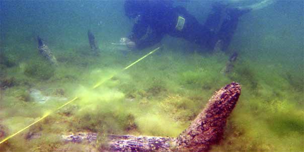 Schiffstyp, auffällig seien die aus dem Seeboden herausragenden Spanten des