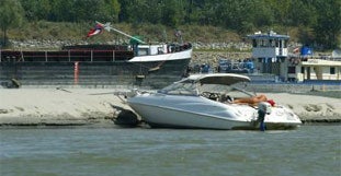 den Liegeplatz an. Die Frau wollte vom Motorboot an den Landesteg springen,