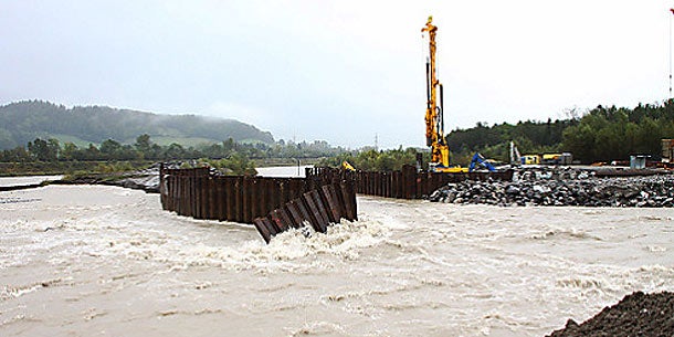 An der Baustelle zum Illwerke-Kraftwerk in Feldkirch ist in der Nacht auf Mittwoch nach stundenlangen Starkniederschlägen ein Kiesdamm auf eine Länge von rund 40 Meter gebrochen. Die Wassermassen spülten ein neu angelegtes Bachbett weg, Personen kamen aber nicht zu Schaden. Auch die Maschinen auf der Baustelle blieben unbeschädigt, teilte die Stadt Feldkirch in einer Aussendung mit.