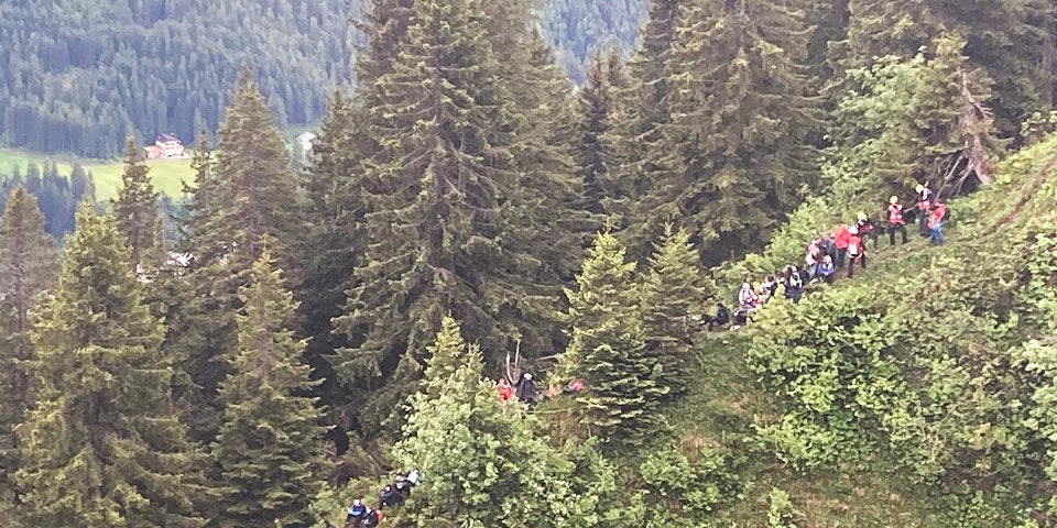 Die aus Zwölf- bis Vierzehnjährigen bestehende Gruppe aus Ludwigshafen (Rheinland-Pfalz) war am 7. Juni auf einer nicht beschilderten Tour auf dem schmalen Heuberggrat, der laut Polizei "Schwindelfreiheit, Trittsicherheit sowie Erfahrung im alpinen Gelände erfordert", in Bergnot geraten. Grundlage für die Auswahl der Tour war eine Bewertung auf einer Bergsteigerseite im Internet gewesen. Etwa 70 Personen wurden mit zwei Hubschraubern mittels Taubergung und Evakuierungssets geborgen, die anderen stiegen von der Bergrettung begleitet ab. Die durchnässten und unterkühlten Kinder mussten vom Kriseninterventionsteam (KIT) betreut werden, inzwischen ist die Gruppe wieder zuhause in Deutschland.