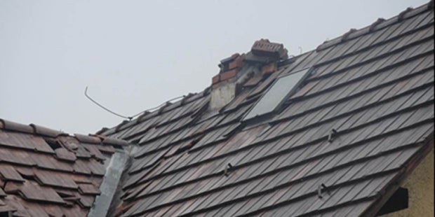 Ein Blitz schlug in ein Haus ein und schleuderte den Kamin vom Dach.