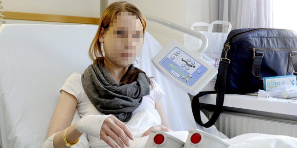 Schwer verletzt kauert das Opfer am Boden, wird ins Spital eingeliefert, wo es noch Wochen bleiben muss: „Ich habe einen doppelten Schambeinbruch, eine Kehlkopfprellung und weitere Blessuren“, sagte Natalie V. zu ÖSTERREICH.