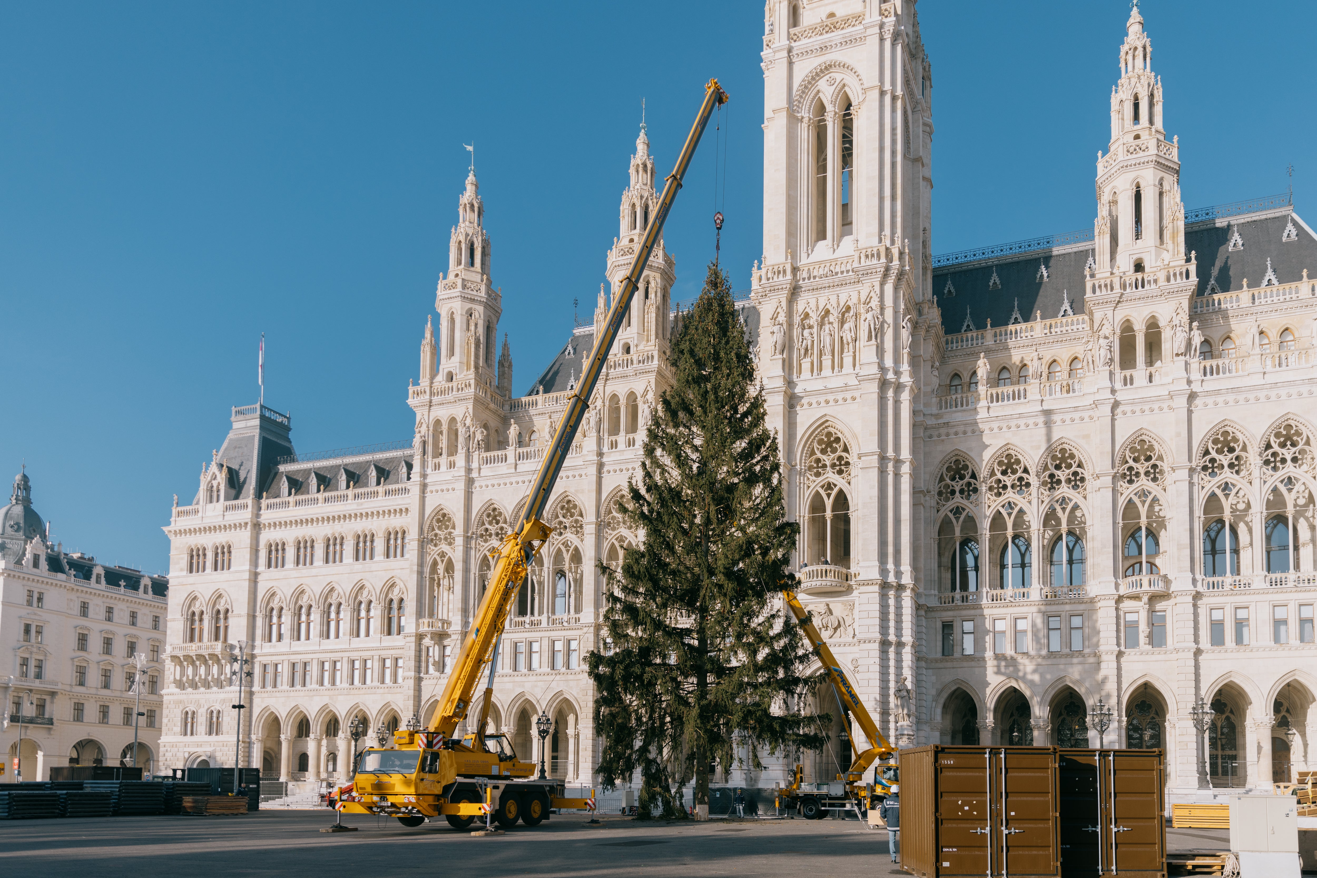 Die mehr als 30 Meter hohe Fichte kommt aus Rastenfeld in Niederösterreich. Der Baum soll in kommenden Tagen in Szene gesetzt werden.