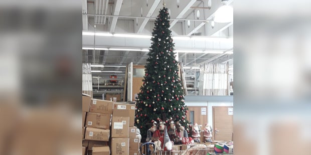 Derzeit hat es Temperaturen bis zu 30 Grad. Das hält aber das Obi-Kaufhaus keinesfalls davon ab, jetzt schon einen Weihnachtsbaum im Baumarkt zu platzieren.