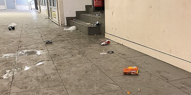 Jugendliche. Es sind aber nicht Obdachlose, die dort ein bisschen Wärme suchen. Es sind Jugendliche, die für Angst sorgen und immer wieder eine Spur der Verwüstung hinterlassen. Weinflaschen, Bierdosen und Drogenreste zeugen regelmäßig von wilden Partyabenden – begleitet von lauter Musik. Ist es wärmer, werden auch die angrenzenden Hauseingänge genützt.