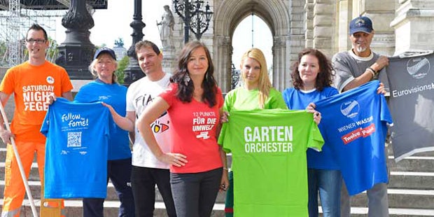Auch die Mitarbeiterinnen und Mitarbeiter aus dem Umweltressort der Stadt Wien verbreiten Song Contest-Stimmung. Sie tragen seit Ende April 2015 T-Shirts mit lustigen Sprüchen. Sie stimmen damit die Wienerinnen und Wiener auf das Event ein.