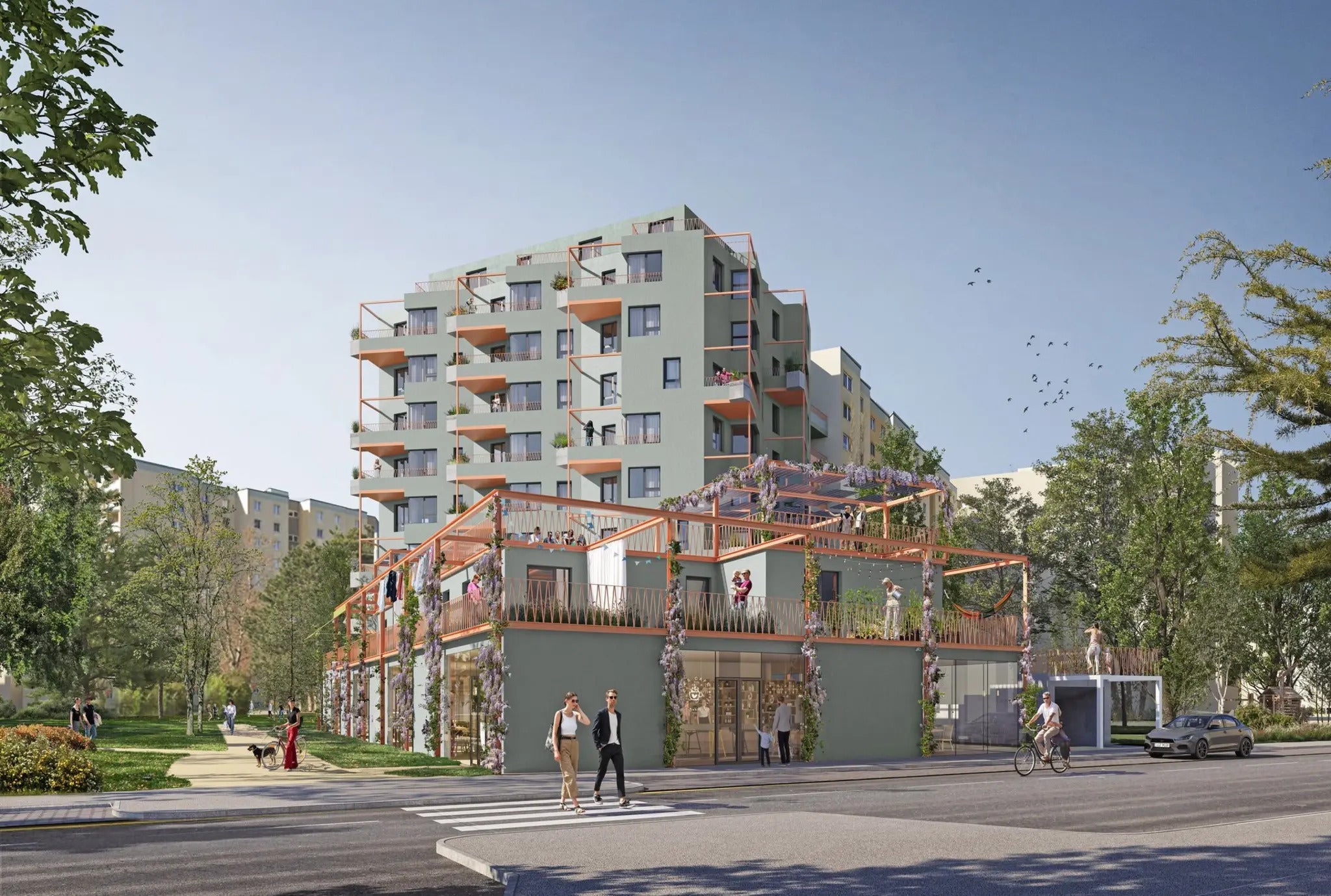 Besonderes Augenmerk wurde auf die Gemeinschaft gelegt. Es gibt eine riesige Dachterrasse zum Garteln, Naschgärten mit Hochbeeten und eine Pergola zum Plaudern. Auch das Klima kommt nicht zu kurz, denn eine Photovoltaikanlage sowie begrünte Fassaden sorgen für Nachhaltigkeit.