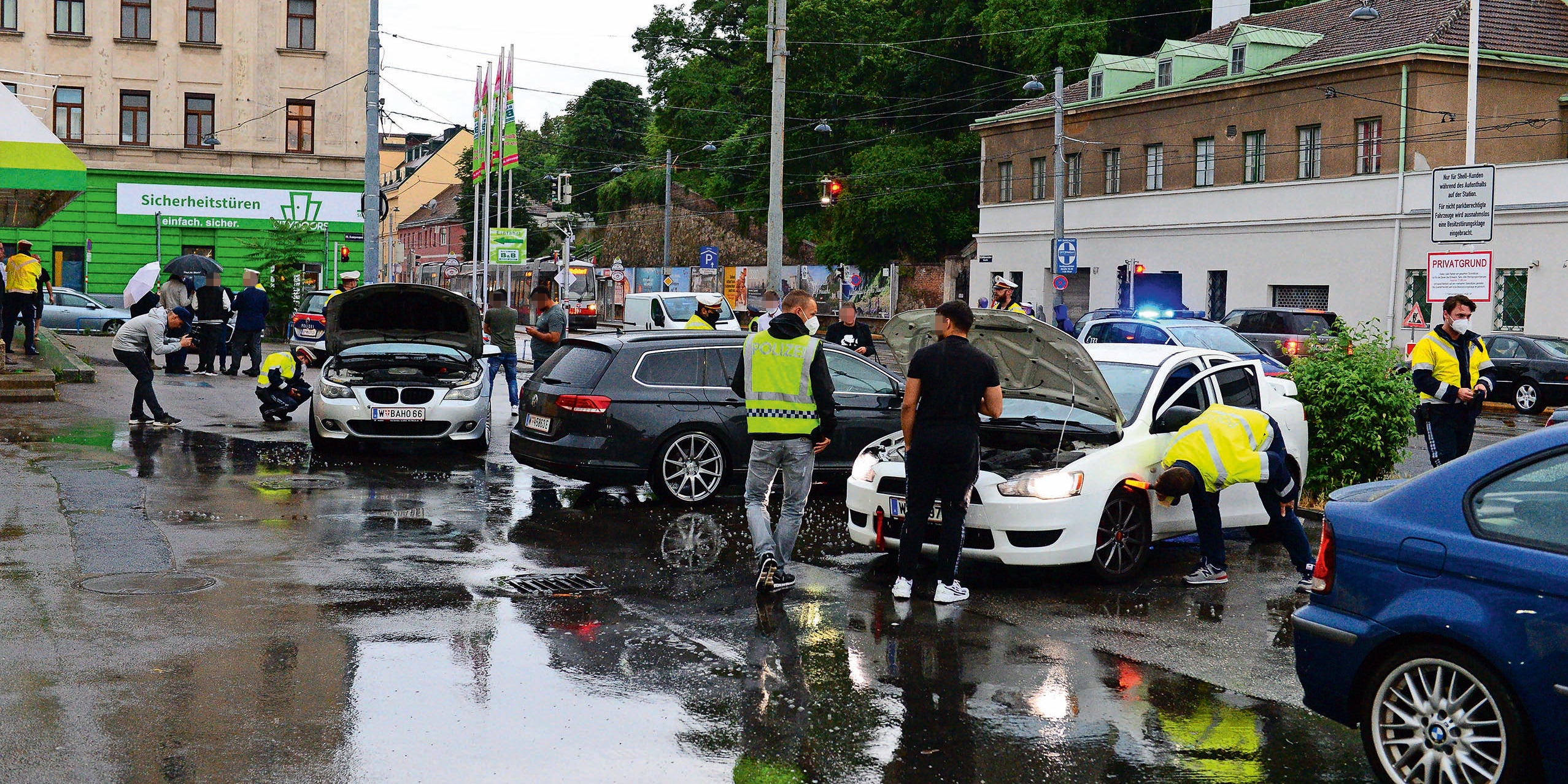 Da sich die sogenannte Roadrunner-Szene – organisierte Raser, die sich in auffrisierten Autos illegale Straßenrennen liefern – während der Pandemie deutlich vergrößerte, führte die Polizei unter der Regie von Innenminister Karl Nehammer, Döblings Bezirksvorsteher Resch, ÖVP-Verkehrssprecher Ottenschlager und Einsatzleiter Losko von der Landesverkehrsabteilung Wien Freitagabend in Wien, NÖ und im Burgenland eine Schwerpunktaktion durch.