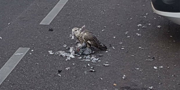Im Wien-Brigittenau wurde nahe dem Hannovermarkt ein Falke dabei fotografiert, wie er eine Taube frisst. Wie die Eulen- und Greifvogelstation Haringsee gegenüber oe24.at angab, handelt es sich bei dem Greifvogel nicht wie vermutet um einen Turmfalken, sondern um einen sehr seltenen Sakerfalken. Das Foto zeigt den Vogel, wie er auf der Straße sitzt, umringt von jeder Menge Federn.