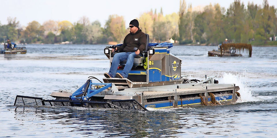 Seit heuer sind zwei kleine Mähboote im Einsatz, ein Teil der Alten Donau wird aber von externen Auftragnehmern bearbeitet.