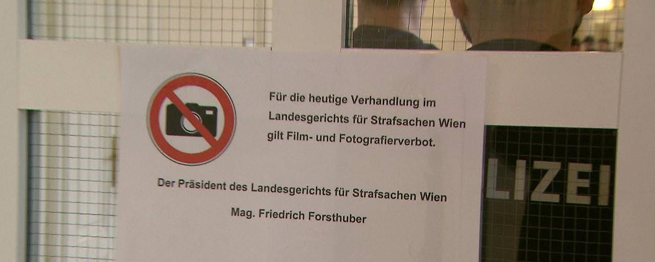 Die Verhandlung fand unter am Landesgericht bisher nie dagewesenen Sicherheitsvorkehrungen statt. Der gesamte Trakt, der zum Verhandlungssaal führte, war gesperrt. Wer passieren und zur Verhandlung wollte, musste sich per Ausweis legitimieren, wobei die Daten von Beamten des Bundeskriminalamts schriftlich erfasst wurden. Durchgelassen wurde man nur, nachdem man sich neuerlich einer Durchsuchung auf verdächtige Gegenstände gestellt hatte - eine erste eingehende Überprüfung hatte es bereits im Eingangsbereich des Gerichts gegeben. Fotografen und Kameraleute wurden nicht durchgelassen - das Präsidium hatte ein absolutes Fotografier- und Filmverbot verhängt. Die anwesenden Medienvertreter und sonstigen Besucherinnen und Besucher hatten im Gerichtssaal unter der Androhung, ansonsten den Saal verlassen zu müssen, ihre Handys abzuschalten.