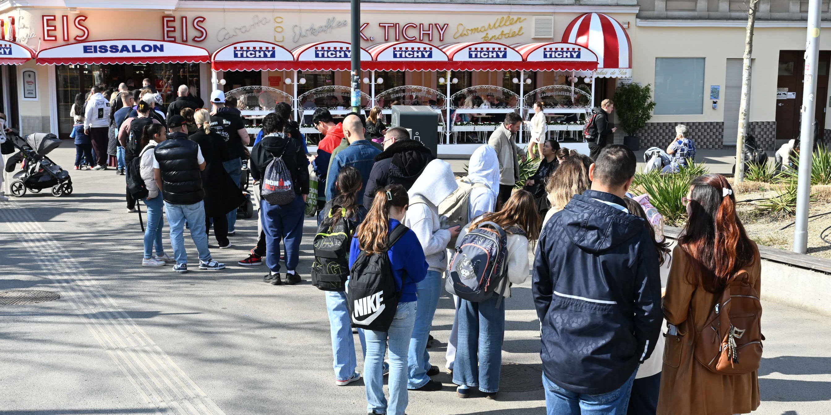 Wien hat sein süßes Herz zurückbekommen. Kaum zeigt sich die Märzsonne, wird der Reumannplatz zur Bühne für den ersten süßen Frühlingstag. Vor dem Kult-Eissalon Tichy in Favoriten hat sich am Freitag schon ab dem Vormittag eine lange Schlange gebildet. Dutzende Menschen wollten sich den Auftakt der Wiener Institution nicht entgehen lassen.