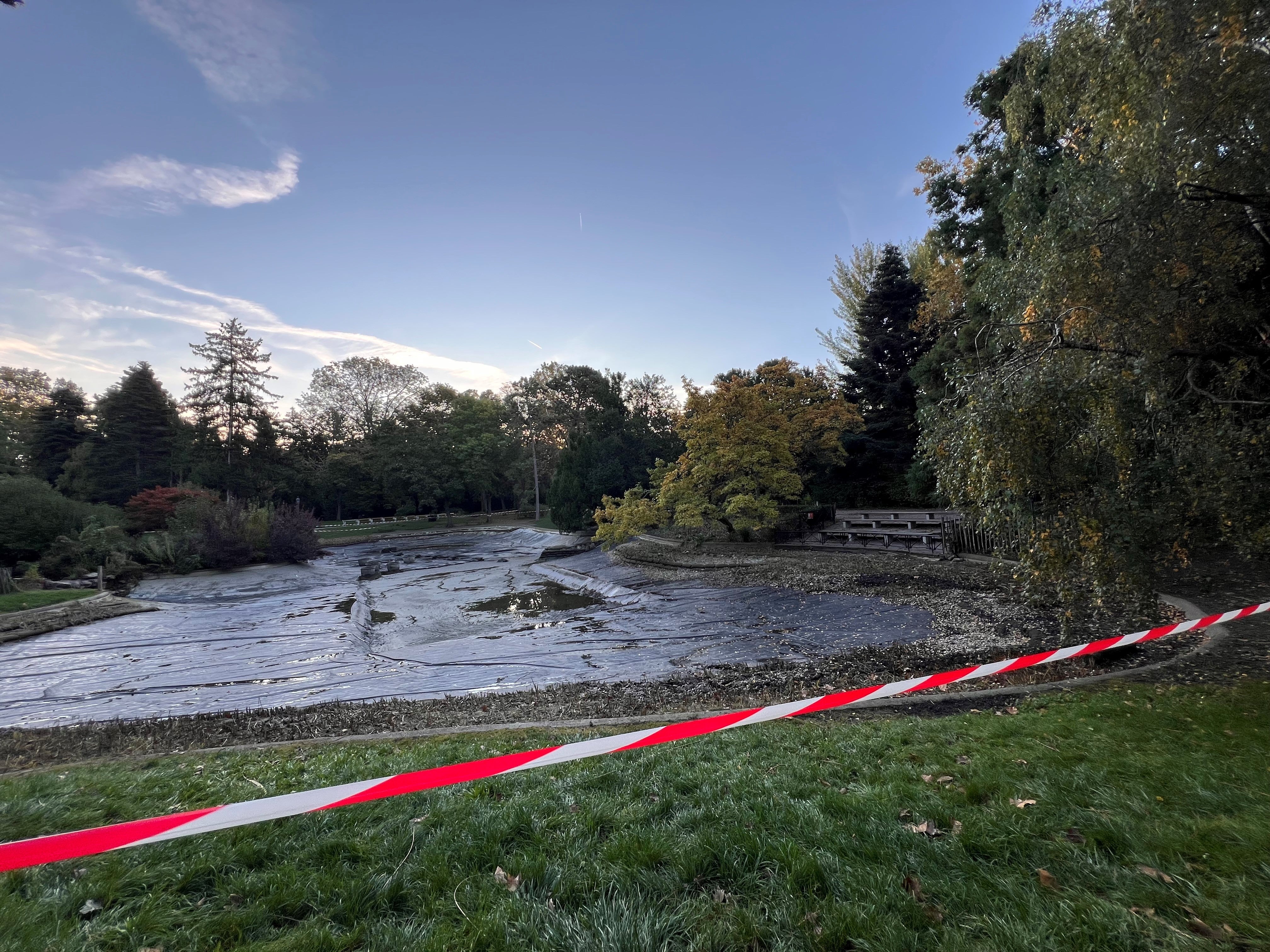 Das Entsetzen bei Joggern und Spaziergängern in Währing war groß, als dieser Tage im Türkenschanzpark der Teich verschwunden war. Ausgelaufen konnte er nicht sein, da er sichtbar eine undurchlässige Folie am Grund hat.