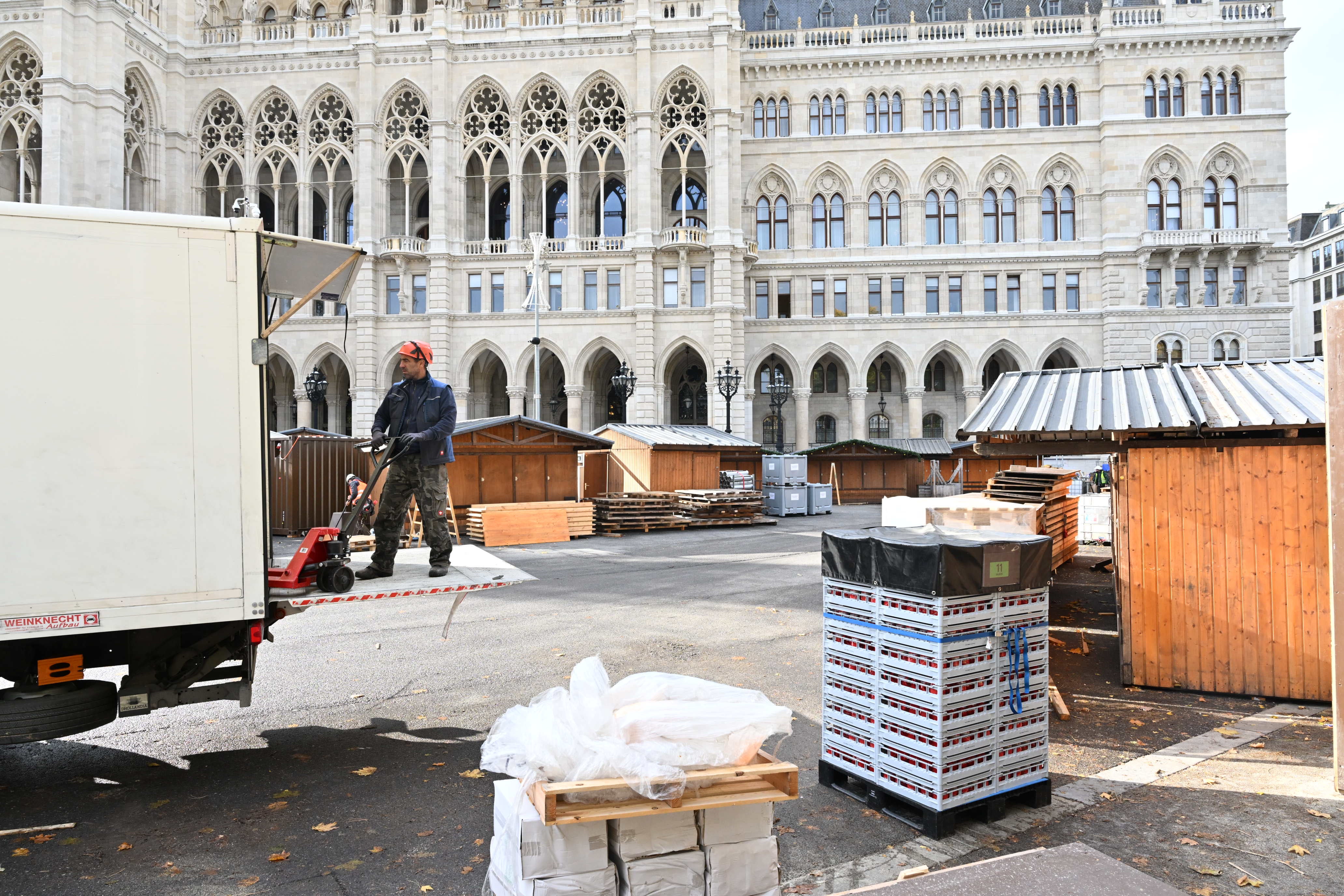 Der Wiener Christkindlmarkt am Rathausplatz öffnet heuer am 14. November - die Vorbereitungen laufen.