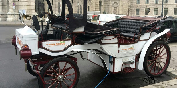 Kutsche mit einer Leistung von 16 Kilowatt wird auf Events präsentiert - Werbeträger soll Fiakern keine Konkurrenz machen.