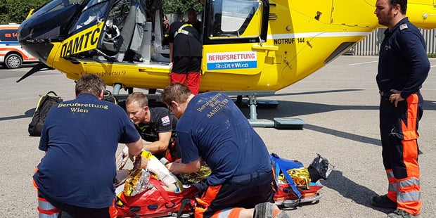 Der Schwerverletzte musste in einer Rettungswanne unter Zuhilfenahme eines Baukran aus der Baustelle geborgen werden. Anschließend wurde er mit einem Rettungshubschrauber in ein Krankenhaus geflogen
