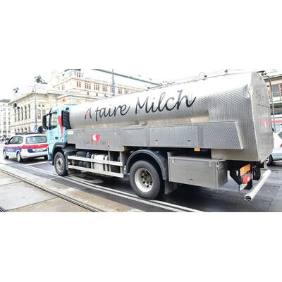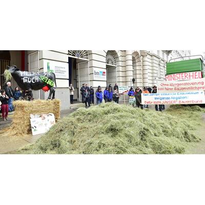 Dutzende Mitglieder der IG Milch haben heute unter anderem vor dem Parlament und dem Landwirtschaftsministerium gegen das Ende der Milchquote demonstriert. Einige Bauern der IG Milch waren gestern mit ihren Traktoren aus Oberösterreich und Niederösterreich im Rahmen einer Protestfahrt nach Wien gefahren. Heute Vormittag bauten sie vor dem Haus der Europäischen Union in der Wiener Wipplingerstraße einen "Milchsee" auf, als Symbol für die zu erwartenden Milchüberschüsse. "Der Traum der wachstumswilligen Betriebe, dass mit dem Auslaufen der Quote dieses Wachsen leistbar wird, wird zu einem Bumerang werden", kritisierte IG-Milch-Obmann Ewald Grünzweil.