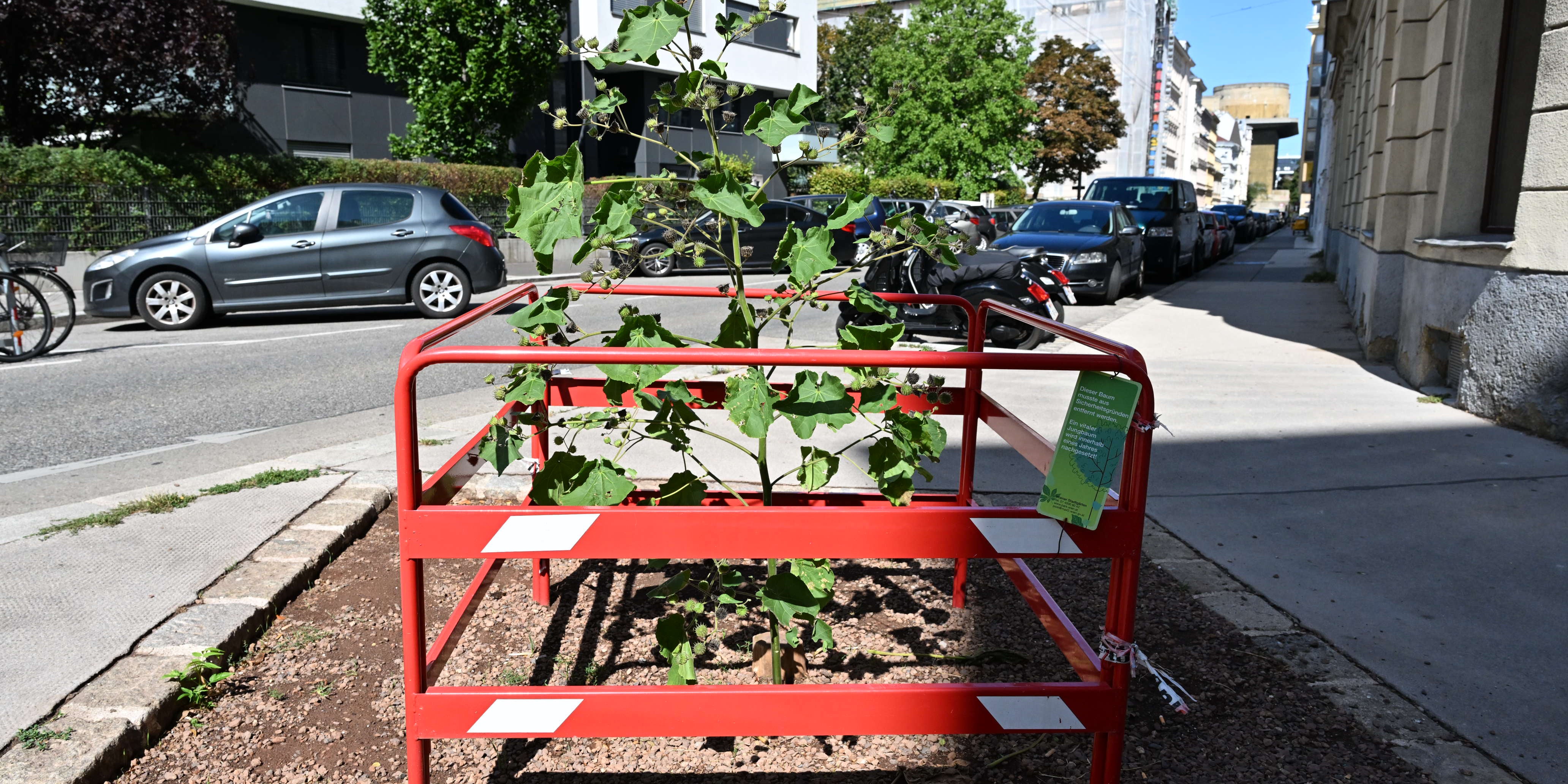 Der ursprünglich gepflanzte Ginkgo Biloba fühlte sich an seinem Standort nicht wohl und musste im Jänner 2024 "aus Sicherheitsgründen" wieder entfernt werden, wie "Mein Bezirk" berichtet. Seither markiert nur eine knallrote Absperrung die Stelle, hinter der mittlerweile hohes Unkraut wächst.