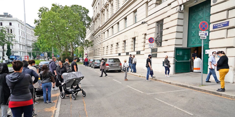 Wien. Entsprechend der Lockerungen der Ausgangsbeschränkungen durch die Bundesregierung ist es seit 11. Mai wieder möglich, Häftlinge unter Einschränkungen zu besuchen: Nach Voranmeldung und Terminvereinbarung darf allerdings immer nur ein Angehöriger (sowie ein zweiter, der noch nicht 14 ist) zum Insassen, wobei laut Homepage der Justizanstalt Josefstadt auf dem Weg dorthin, aber auch beim Treffen ein Mindestabstand von einem Meter einzuhalten ist – sich um den Hals zu fallen und zu knuddeln ist also nicht drin. Und das Tragen eines Mund-Nasen-Schutzes ist obligat. Trotzdem wollten es sich viel Angehörige nicht nehmen lassen, gleich am ersten Tag einen Verwandten hinter Gittern zu besuchen. Wer sich die langen Schlangen nicht antun möchte, dem steht mehr (Video-)Telefonzeit mit den Insassen zur Verfügung.