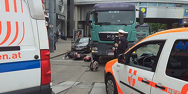 Motorradfahrer (68) prallte in Donaustadt gegen einen Lkw.