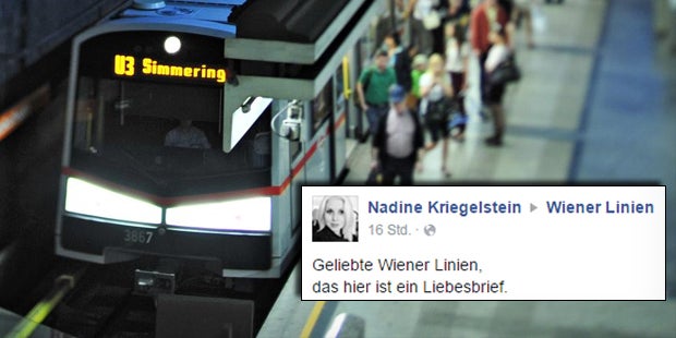 Nadine Kriegelstein lebte früher in Wien, ist dann aber ins "verregnete Manchester" (Großbritannien) gezogen. Dort hat sie nicht nur mit dem schlechten Wetter sondern auch mit den miesen Bedingungen im öffentlichen Nahverkehr zu kämpfen. Diese Erfahrung brachte sie jetzt dazu, eine Ode an die Wiener Linien zu verfassen und auf Facebook zu posten.