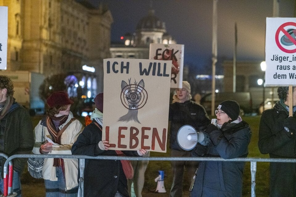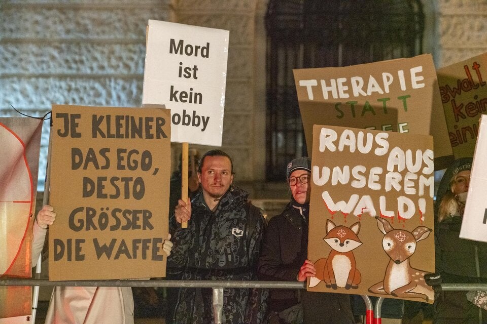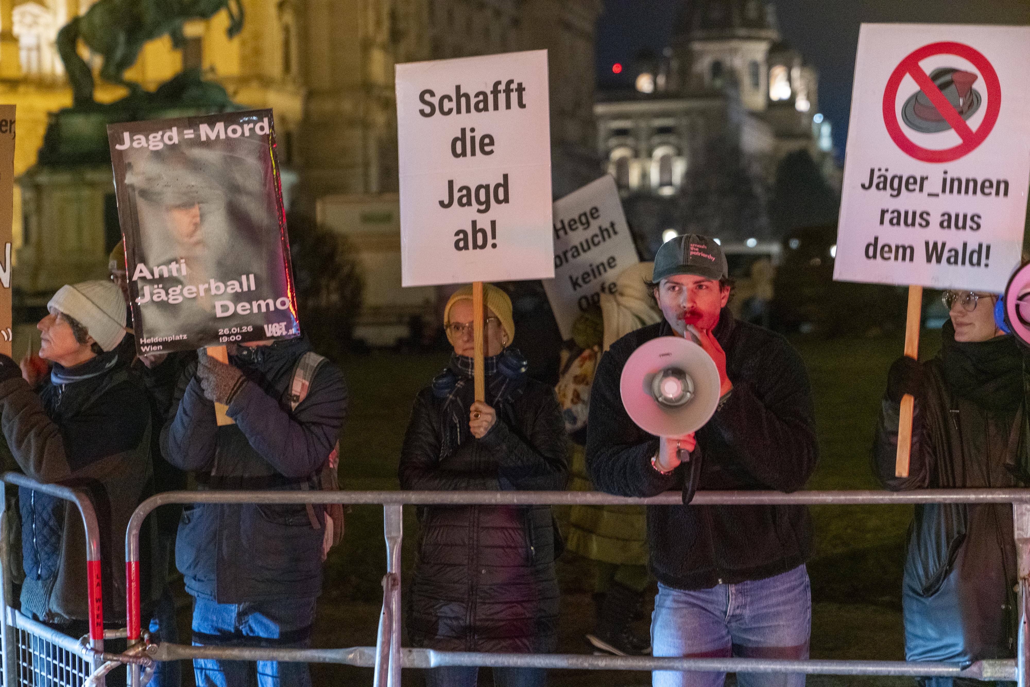 Am Abend des 26. Jänner standen rund 100 Demonstranten am Heldenplatz. Mit Rufen wie "Hände weg von Tieren" und "Blut an euren Händen" machten sie ihrem Ärger Luft. Kritisiert wurden unter anderem Baujagd, Fallenjagd, das Aussetzen von Gatterwild, Treibjagden trotz Krankheiten wie Myxomatose, Abschüsse geschützter Arten sowie getötete Haustiere in der Nähe ihrer Besitzer.