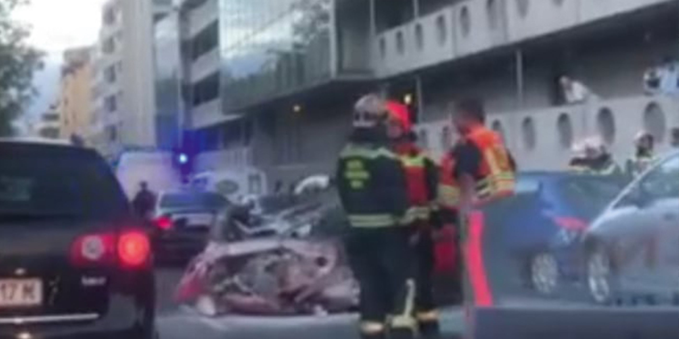 Am Freitagnachmittag kam es aus bisher ungeklärten Umständen zu einem schweren Crash in Wien-Favoriten, bei dem ein Auto auf das Dach geschleudert wurde. Das Auto begann daraufhin zu brennen.